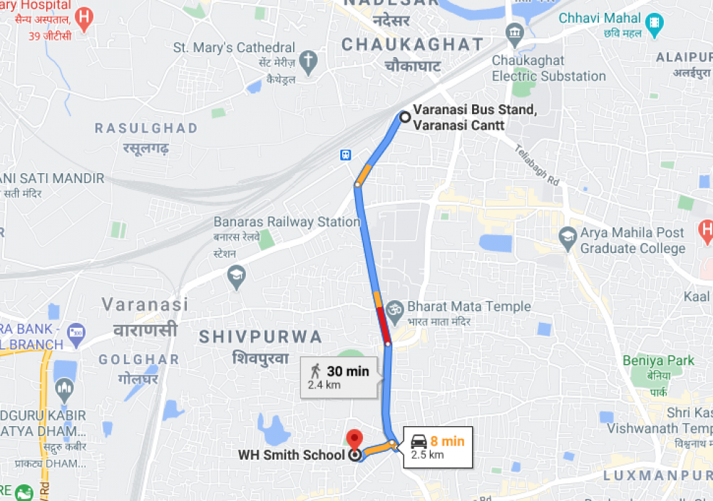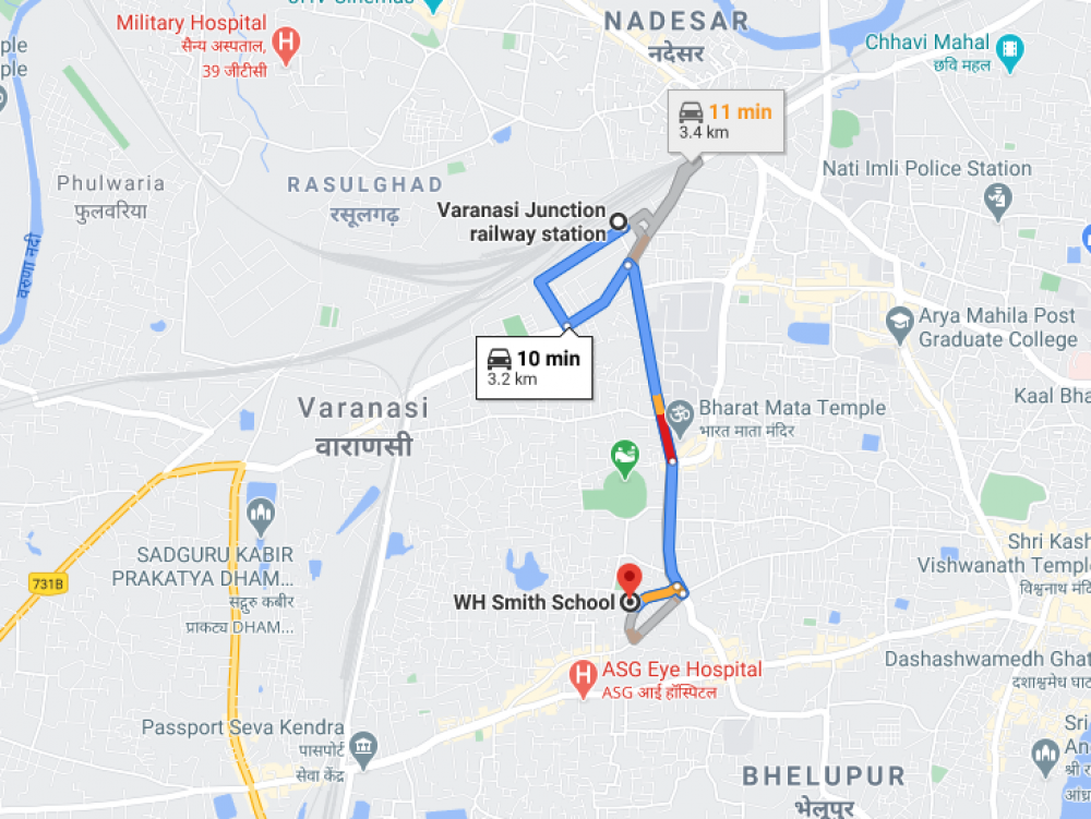 from Varanasi Junction railway station, maa surge balika intermediate collage, Railwayganj Colony, Varanasi, Uttar Pradesh 221002