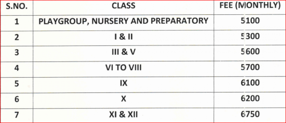 Note: Please contact school or visit official site for updated fee structure for year 2023- 2024.