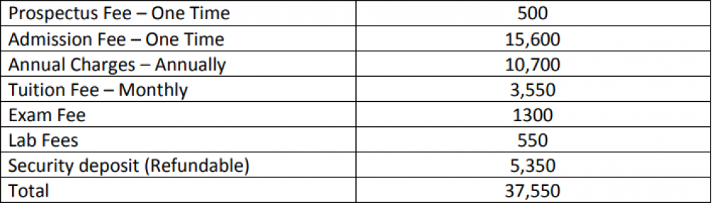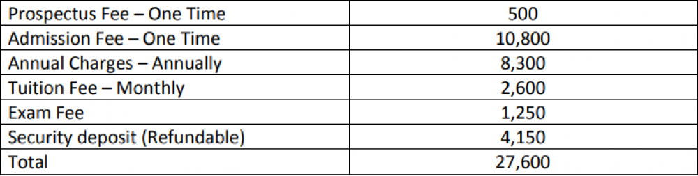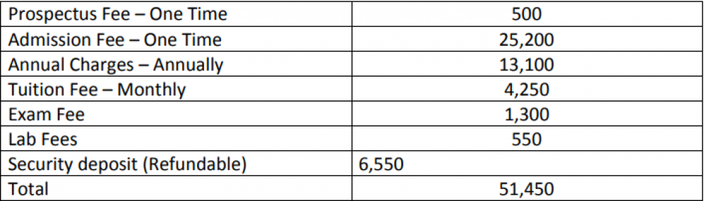 Note: Please contact school or visit official site for updated fee structure for year 2023- 2024.