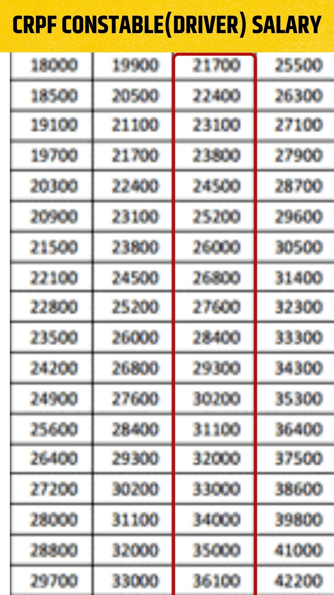 | CRPF Constable(Driver) | Rs.21700 – 69,100/- |