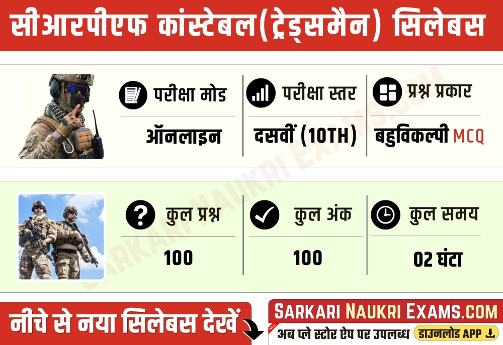CRPF Constable(Tradesman) Syllabus 2026 | PDF Download, Exam Pattern