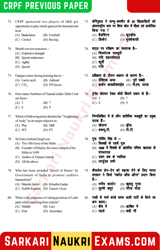 | CRPF Head Constable Ministerial Previous Paper | |