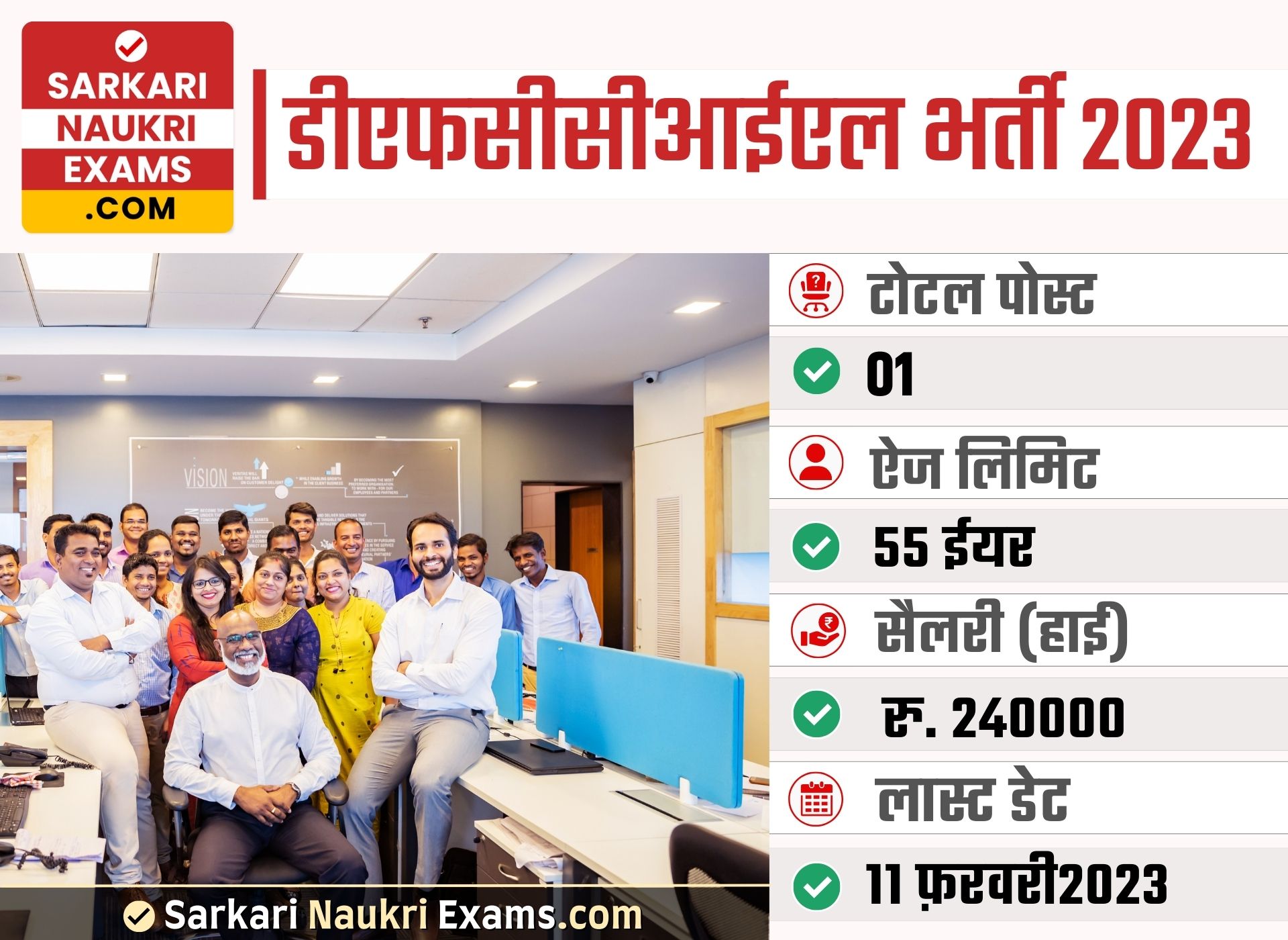 There are total 1 vacancies for this post notification. Min Pay Scale Monthly for this post is Rs.(70,000). Pay Scale for this vacancy is Rs.(70,000-2,40,000). Max Pay Scale Monthly Rs.(2,40,000). Selection for this job will be based on Written Exam. The Last Date for Application Closing is 11/Feb/2023. You can download notification from Here. If you want other details such as admit card, answer key & result for 2024 year, visit official website https://dfccil.com/. For Latest Sarkari Result, Sarkari Exam & sarkariresult Updates keep visiting www.sarkarinaukriexams.com.