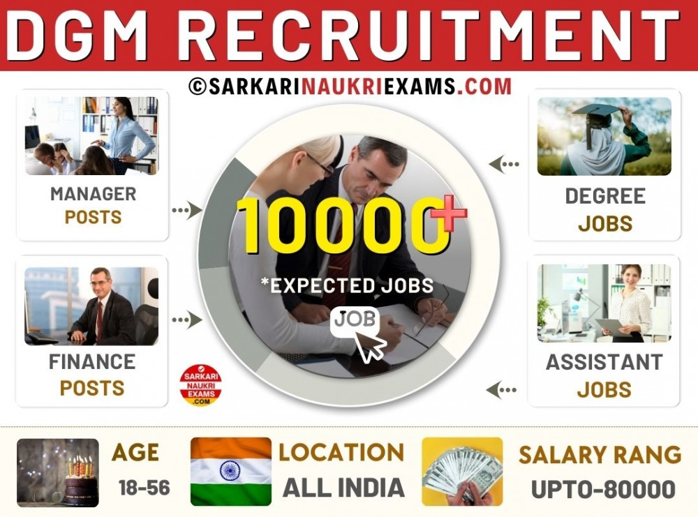 There are 10,000 vacancies for the DGM Job in UP, Jharkhand, and other states. These government job positions will be permanent, accompanied by periodic salary increments and promotions. The locations for the DGM government jobs in 2026 span across India, varying based on the specific nature of the job. For further details regarding the latest DGM Recruitment Jobs (डिप्टी जनरल मैनेजर भर्ती नवीनतम नौकरियाँ), DGM Sarkari Naukri, and the application process for the DGM Vacancy, please refer to the information provided below.