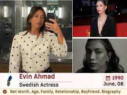 As of 2026, Evin Ahmad’s total net worth is estimated to be between $1.5 million and $2 million, earned through her successful career in films and television, including popular projects like Snabba Cash and Who Is Erin Carter?.