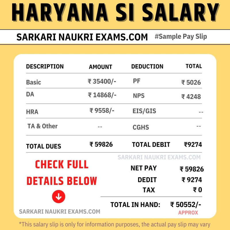 Here is a summary of the salary details for Haryana HSSC Sub Inspector (SI) s, including their daily, monthly, and annual income. Please note that these figures represent the in-hand salary of the constables and do not include any allowances or deductions.