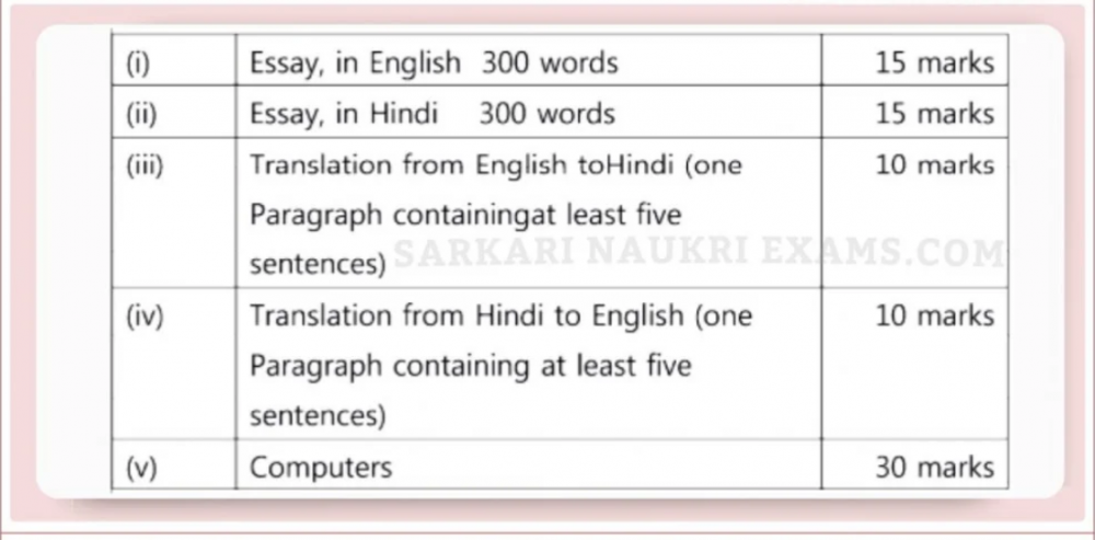 | Subjects Name (विषय नाम) | निबंध लेखन (300 शब्द), अनुवाद, कंप्यूटर |