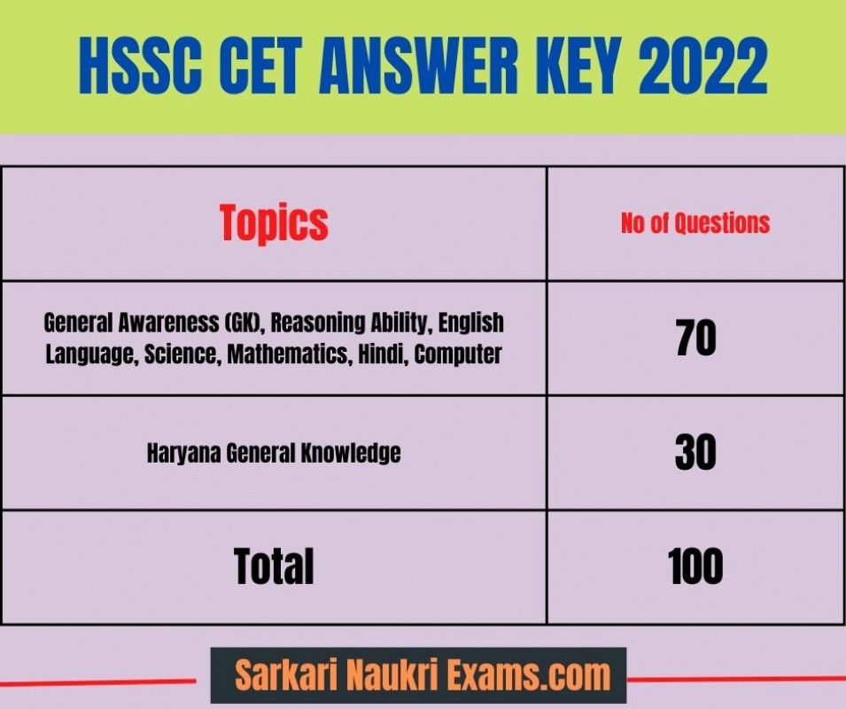 HSSC CET Answer Key 2022 Sarkari Result Download Link