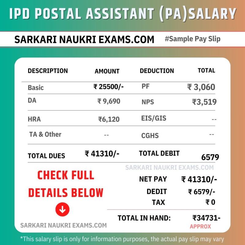 - IPD Postal Assistant (PA) Salary 7th Pay Commission