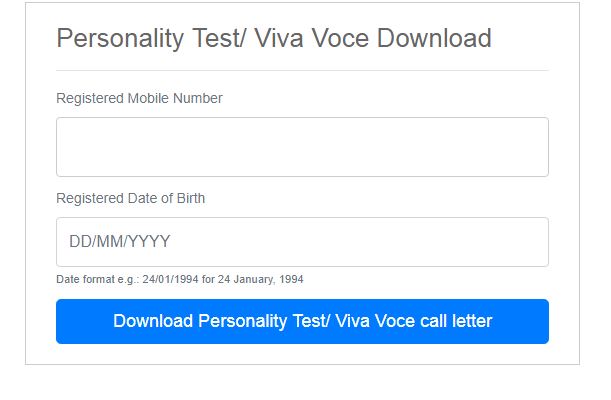 - STEP 4 : Click on Download Personality Test/ Viva Voce Call Letter