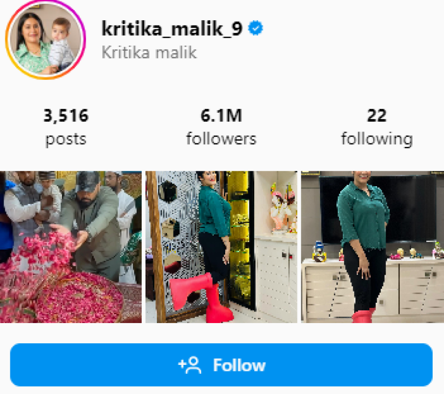Kritika Malik gained attention as the second wife of fellow YouTuber Armaan Malik. They got married on October 13, 2018, and Kritika shares her life with co-wife Payal Malik. The family welcomed a new member, their son Zaid Malik, born on April 6, 2023. With a substantial Instagram following of 6.1 million, Kritika connects with her audience through her channel @Kritikamalik2468 and collaborates with Payal on @Kritikapayal1st. Starting her journey with a YouTube video titled "Change your thinking; the country will change in 2021," which garnered 6.4K views, Kritika, based in New Delhi, India.