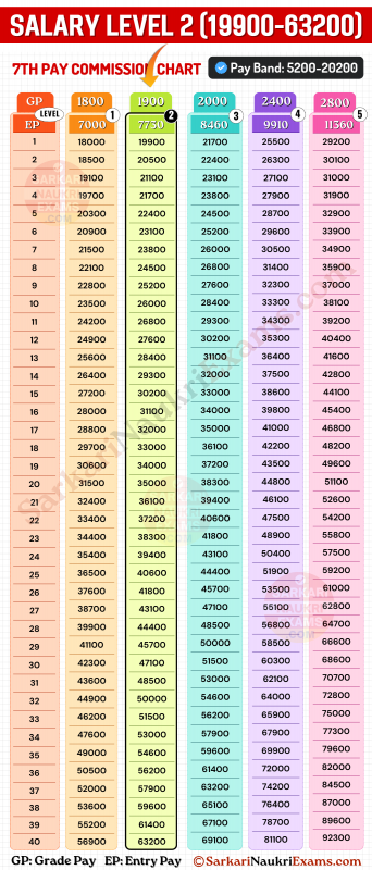 The 7th Central Pay Commission (CPC) Level 2 Salary details have been officially released, marking a significant milestone for government employees across India. The Level 2 Salary under the 7th CPC features a pay band of 5200-20200. The grade pay, an integral part of the salary structure, stands at 1900. The entry pay, which is the initial salary, is 7730.