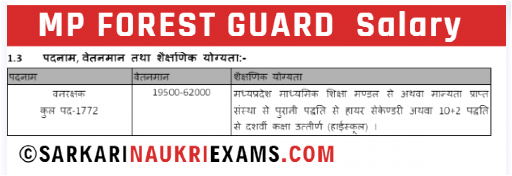 Deduction amount of NPS, PF & Income tax will be done in MP Forest Guard basic salary & DA as per Madhya Pradesh Forest Guard norms.