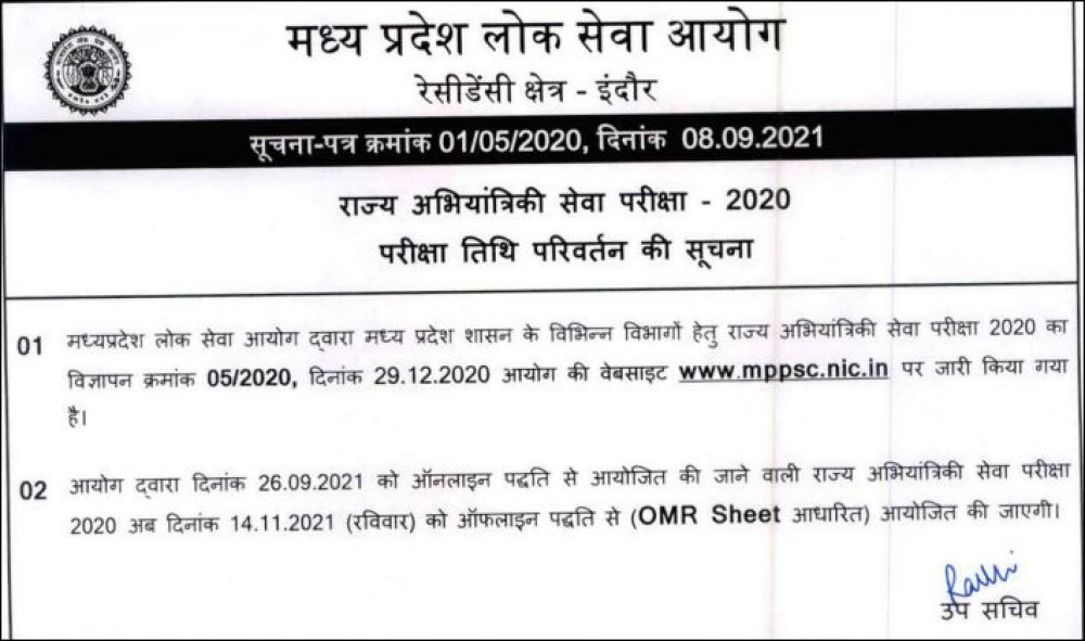 MPPSC SES Admit Card 2021: Exam Date Announcement