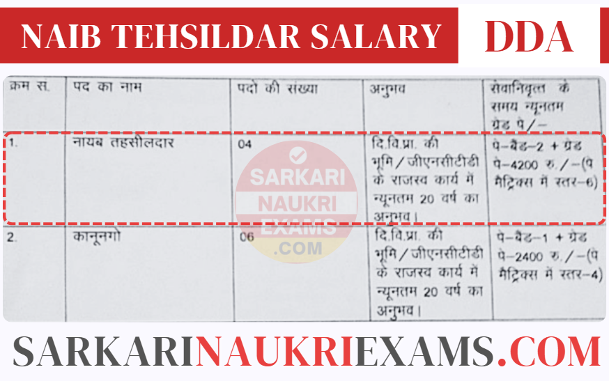 Here are the details of Sample Salary Slip of Naib Tehsildar and Official Pay Scale. This pay scale include the notification image of UPPSC, Delhi DDA, and Punjab PPSC.