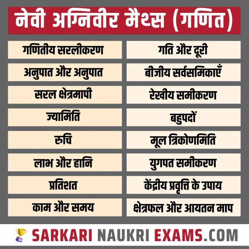 Check the full detailed Indian Navy Agniveer Syllabus in Hindi PDF Download for various topics. These topics are General Mathematics and science. Check the Topics-wise full details syllabus from the below section.