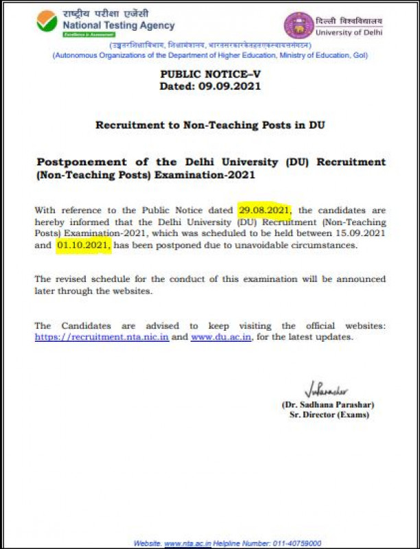 NTA-Delhi University Non-Teaching Admit Card 2021: Exam Date Postponed For 1145 Posts