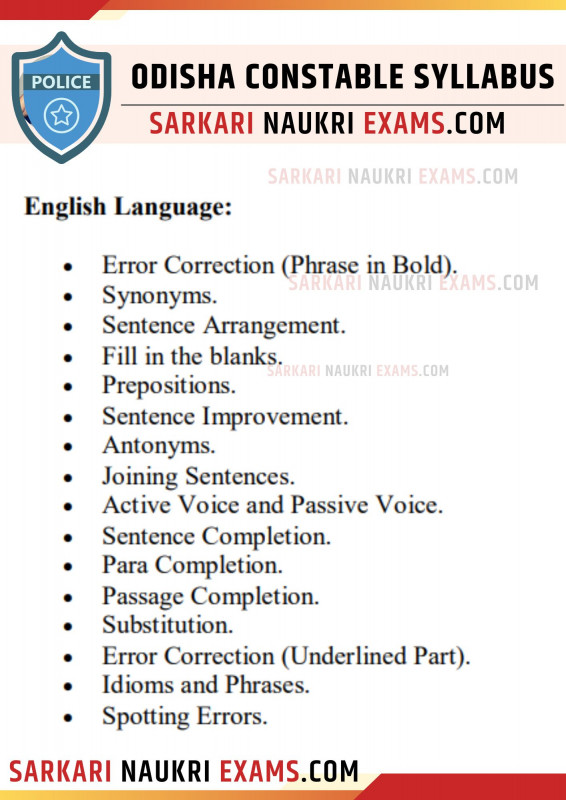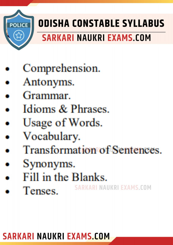 - Odisha Police Constable Syllabus General English
