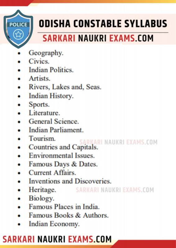 - Odisha Police Constable Syllabus 2026 Detailed Topics in Odisha