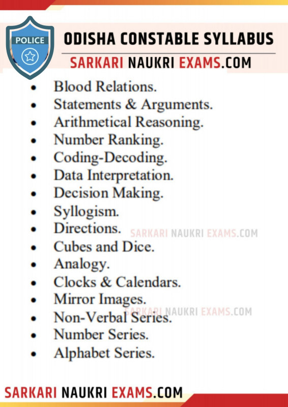 - Odisha OPSSB Police Constable Syllabus Reasoning & Aptitude