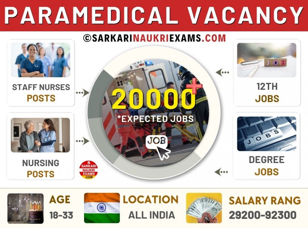 There are 20,000 vacancies for the Paramedical Job in UP, Jharkhand, and other states. These government job positions will be permanent, accompanied by periodic salary increments and promotions. The locations for the Paramedical government jobs in 2026 span across India, varying based on the specific nature of the job. For further details regarding the latest Paramedical Recruitment Jobs (पैरामेडिकल भर्ती नवीनतम नौकरियाँ), Paramedical Sarkari Naukri, and the application process for the Paramedical Vacancy, please refer to the information provided below.