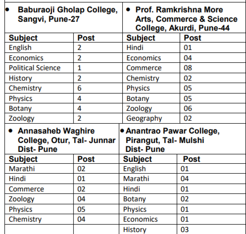 | Pune District Education Association (PDEA) has announced the recruitment for the positions of Assistant Professor, Principal, Clerk, and other posts for the year 2023. Interested candidates can apply for these positions by filling out the online application form. The last date to submit the application form, as well as the exam date and admit card release date, will be provided in the official notification. The salary for the Assistant Professor, Principal, and other posts will be as per the rules and regulations set by the department. The age limit for these positions will also be mentioned in the notification. To apply online for the Assistant Professor, Principal, Clerk, and other posts, candidates are advised to carefully read the instructions provided and fill out the application form accordingly. Important details such as eligibility criteria, application fee, salary, and other relevant information can be found below. If you have any queries regarding this recruitment, please feel free to ask in the comment section. PDEA Assistant Professor, Clerk Recruitment 2023पुणे डिस्ट्रिक्ट एजुकेशन एसोसिएशन (PDEA) ने वर्ष 2023 के लिए असिस्टेंट प्रोफेसर, प्रिंसिपल, क्लर्क और अन्य पदों के लिए भर्ती की घोषणा की है। इच्छुक उम्मीदवार इन पदों के लिए ऑनलाइन आवेदन पत्र भरकर आवेदन कर सकते हैं। आवेदन पत्र जमा करने की अंतिम तिथि, साथ ही परीक्षा तिथि और प्रवेश पत्र जारी करने की तिथि आधिकारिक अधिसूचना में प्रदान की जाएगी। असिस्टेंट प्रोफेसर, प्रिंसिपल और अन्य पदों के लिए वेतन विभाग द्वारा निर्धारित नियमों और विनियमों के अनुसार होगा। इन पदों के लिए आयु सीमा का भी नोटिफिकेशन में उल्लेख किया जाएगा। सहायक प्रोफेसर, प्राचार्य, क्लर्क और अन्य पदों के लिए ऑनलाइन आवेदन करने के लिए, उम्मीदवारों को सलाह दी जाती है कि वे दिए गए निर्देशों को ध्यान से पढ़ें और तदनुसार आवेदन पत्र भरें। पात्रता मानदंड, आवेदन शुल्क, वेतन और अन्य प्रासंगिक जानकारी जैसे महत्वपूर्ण विवरण नीचे देखे जा सकते हैं। यदि इस भर्ती के संबंध में आपके कोई प्रश्न हैं, तो कृपया टिप्पणी अनुभाग में बेझिझक पूछें।