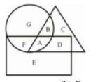 (167) In the figure given below, the triangle represents car owners, the rectangle represents scooter owners and the circle represents bicycle owners. Select the letter that represents people who own a car as well as a scooter but not | नीचे दी गई आकृति में, त्रिभुज कार मालिकों का प्रतिनिधित्व करता है, आयत स्कूटर मालिकों का प्रतिनिधित्व करता है और सर्कल साइकिल मालिकों का प्रतिनिधित्व करता है। उस अक्षर का चयन करें जो उन लोगों का प्रतिनिधित्व करता है जिनके पास कार और स्कूटर है, लेकिन नहींUP (Forest Dept )-2018
