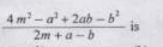 (11) The value of 4m^2-a^2+2ab-b^2/2m+a-b is AISSEE-2020