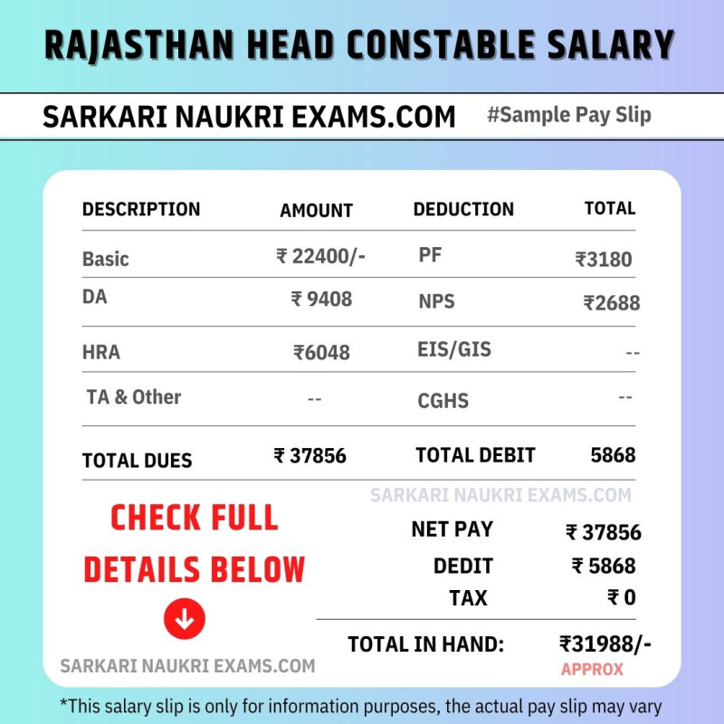 Rajasthan Head Constable Salary After 7th Pay Commission