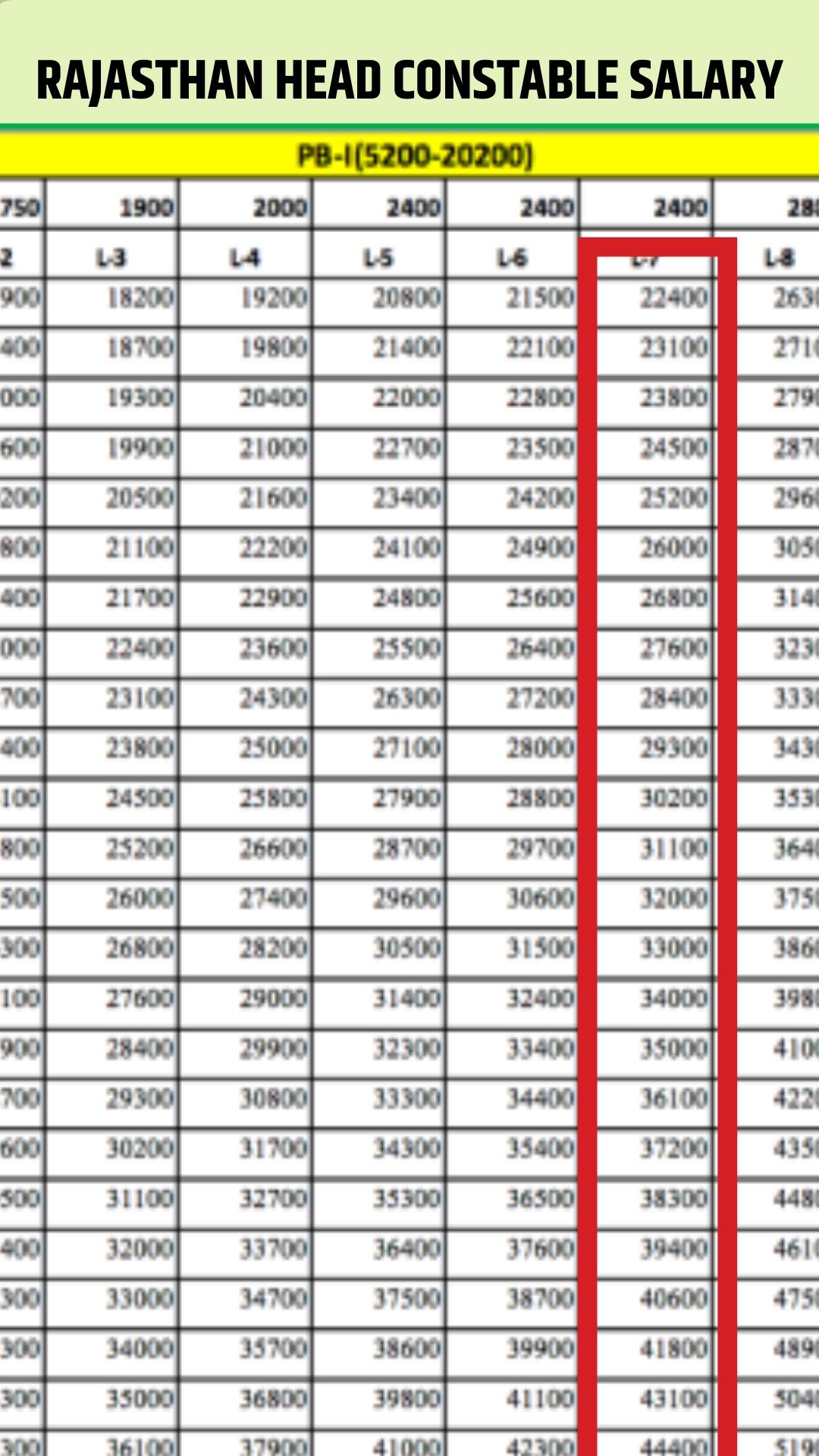 Rajasthan Head Constable board recruitment is done under the state govt supervision. Therefore Rajasthan Head Constable's salary comes under the 7th pay matrix of Maharashtra govt norms. Here are the details of the 7th pay salary matrix.