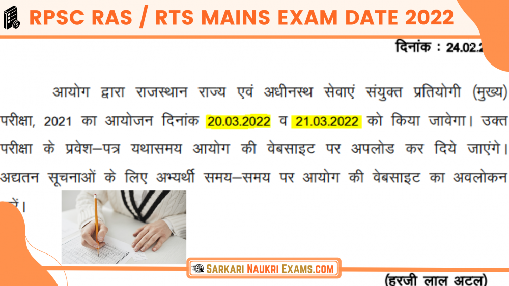 RPSC RAS / RTS Mains Exam Admit Card 2022 | RPSC RAS / RTS New Mains Exam Date (20-21/03/2022)