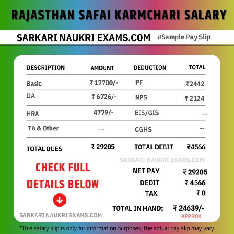 Rajasthan Safai Karamchari Salary Slip Basic & Gross Pay