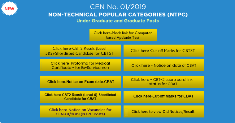 | Railway Recruitment Board (RRB) has declared the result for the post of NTPC- Non-Technical Popular Categories. There were total 35227 vacancies for this recruitment. Result has been declared on 18/Jul/2022 for this examination. So we have good news that result for this examination is available online now. Congratualtions to the candidates who qualified this examination, we wish them a bright future ahead. If you appeard in this examination you can check your result/Rank/Cut-off by navigating to Quick links section and click on Result Link, It will redirect you to result page or you can follow steps explained below. Railway Recruitment Board (RRB) ने NTPC- Non-Technical Popular Categories के पद के लिए परिणाम घोषित कर दिया है। इस भर्ती के लिए कुल 35227 रिक्तियां थीं। यदि आप इस परीक्षा में शामिल हैं तो आप अपना परिणाम / रैंक / कट-ऑफ देख सकते हैं त्वरित लिंक अनुभाग में नेविगेट करना और परिणाम लिंक पर क्लिक करें, यह आपको परिणाम पृष्ठ पर रीडायरेक्ट करेगा या आप नीचे बताए गए चरणों का पालन कर सकते हैं। Job Location - All India |