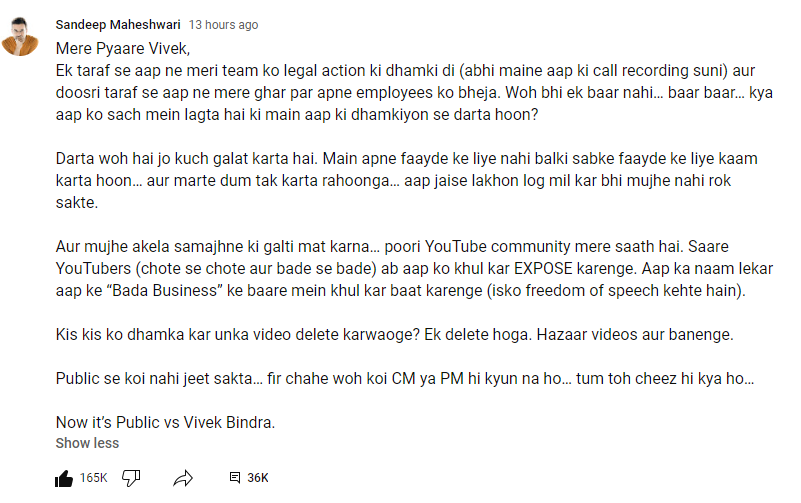 2023 (Dec): Made “Big Scam Exposed” targeting "Dr. Vivek Bindra".