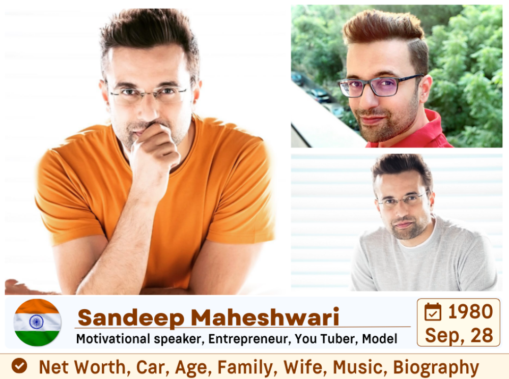 Sandeep Maheshwari, a famous motivational speaker and businessman, was born on 28th September 1980 in New Delhi. He didn’t complete his B.Com degree from Kirori Mal College, Delhi University, but that didn’t stop him from making a big impact in the field of personal development. He started his career as a model when he was 19 years old.