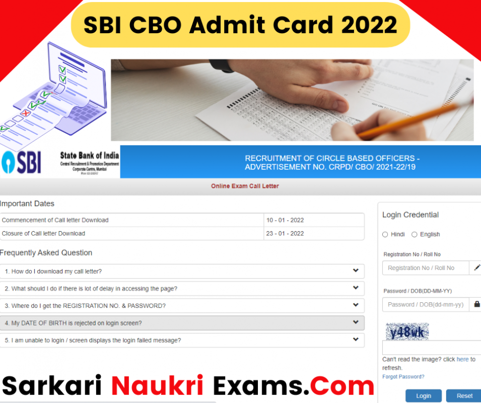 SBI CBO Admit Card 2022 Declared | SBI Circle Based Officer Admit Card / Exam Date For 1226 Vacancy 2021
