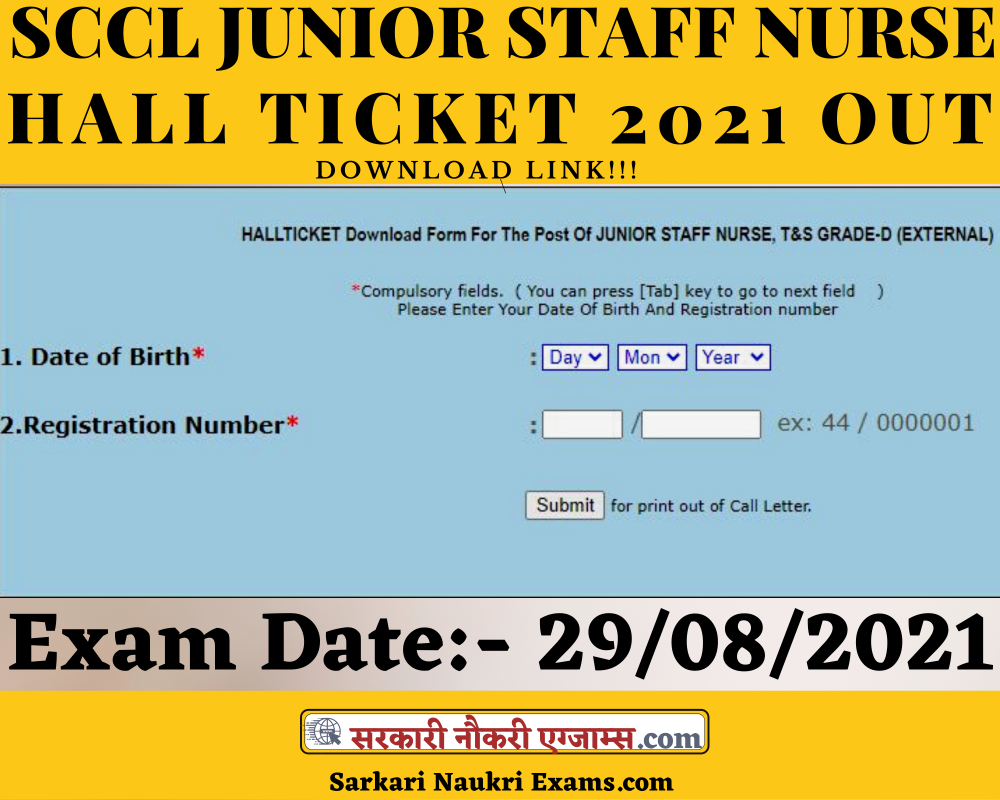 SCCL Junior Staff Nurse Admit Card 2021: Released Download Hall Ticket, Exam Date