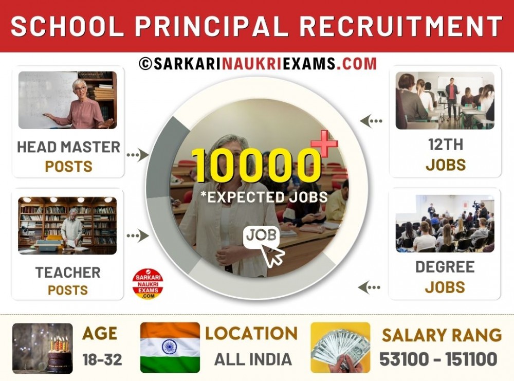 There are 10,000 vacancies for the School Principal Job in UP, Jharkhand, and other states. These government job positions will be permanent, accompanied by periodic salary increments and promotions. The locations for the School Principal government jobs in 2026 span across India, varying based on the specific nature of the job. For further details regarding the latest School Principal Recruitment Jobs (विद्यालय प्राचार्य भर्ती नवीनतम नौकरियाँ), School Sarkari Naukri, and the application process for the School Principal Vacancy, please refer to the information provided below.