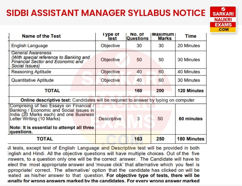 SIDBI Assistant Manager Syllabus 2024 :Written Exam