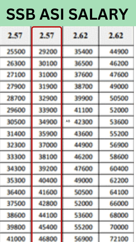 | SSB ASI | Rs.29200-92300 (Pay Level 8) |