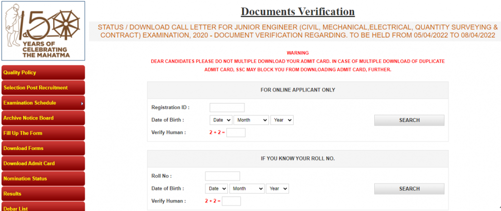 SSC Junior Engineer JE DV Test Admit Card 2022 | SSC JE Documents Verification Test Date (05-08/April/2022)