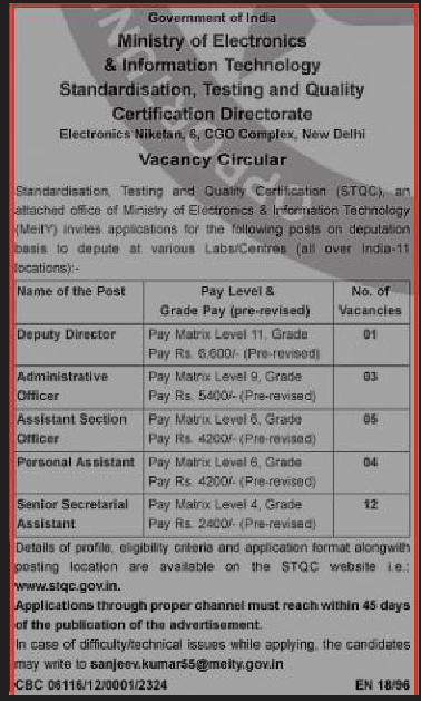 ⭐How can I apply for the Deputy Director, Administrative Officer, or Assistant Section Officer post?To apply for any of these posts, you need to submit the online application form through the official website of STQC before the deadline.