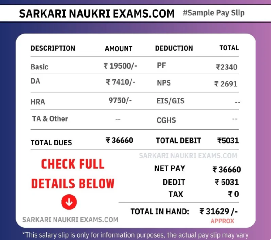 | Pay Scale | ₹19500/- – 62000/- |