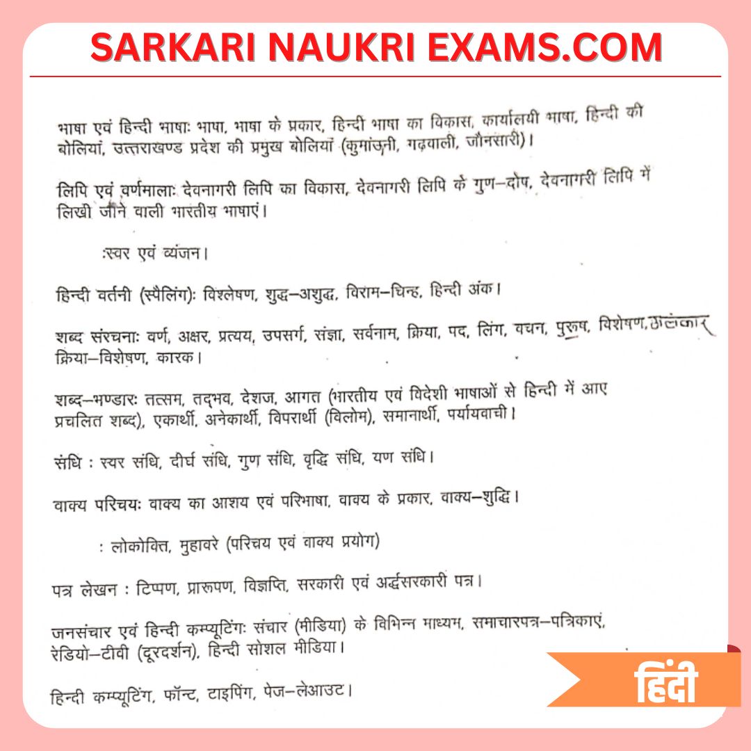Check the full detailed UKPSC Forest Guard Syllabus in Hindi 2024 for various topics. These Forest Guard & Forest Guard topics are General Hindi, Mathematics, General Knowledge, and Village Society and Development. Forest Guard syllabus and download from below.