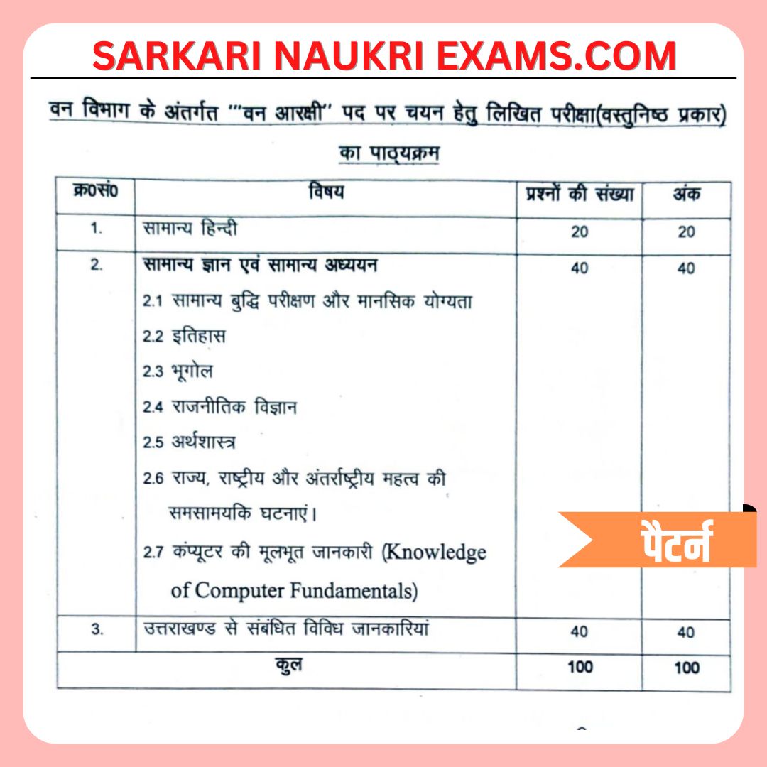 - UKPSC Forest Guard Exam Syllabus Pattern 2024