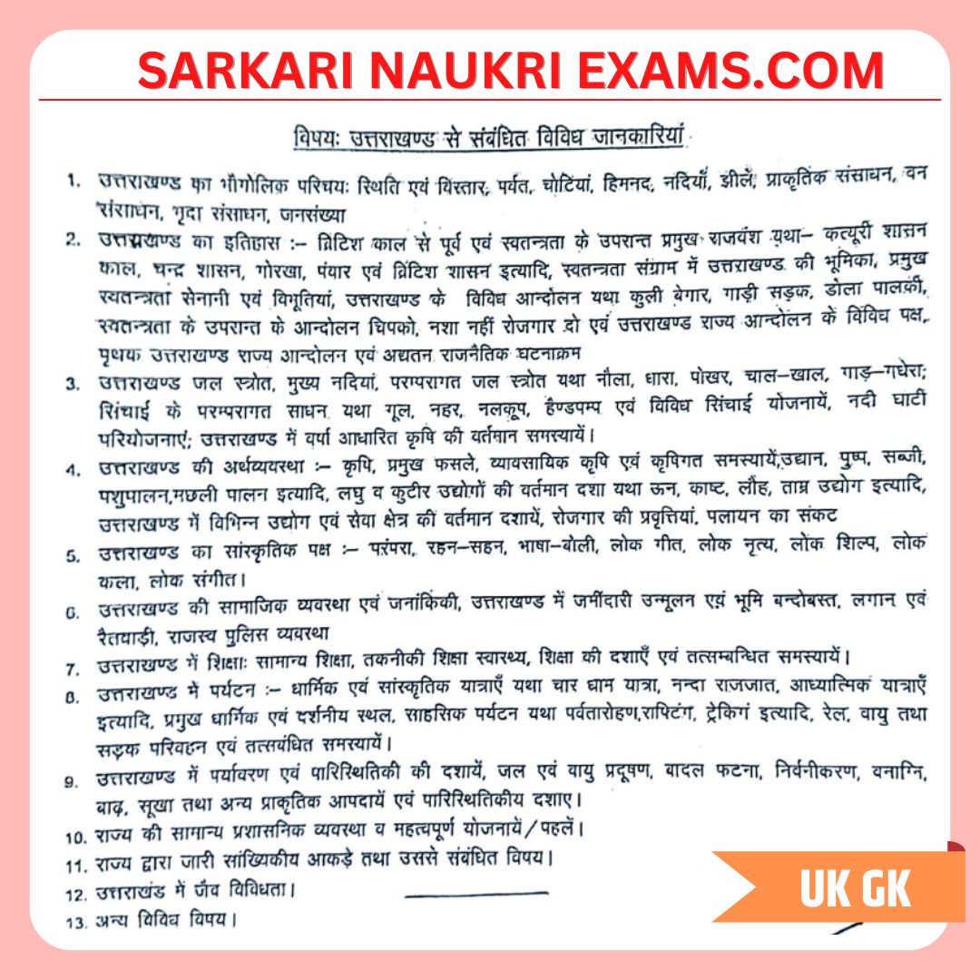 UKPSC Forest Guard Syllabus Uttarakhand Relatead (рд╕рд╛рдорд╛рдиреНрдп рдЬреНрдЮрд╛рди)