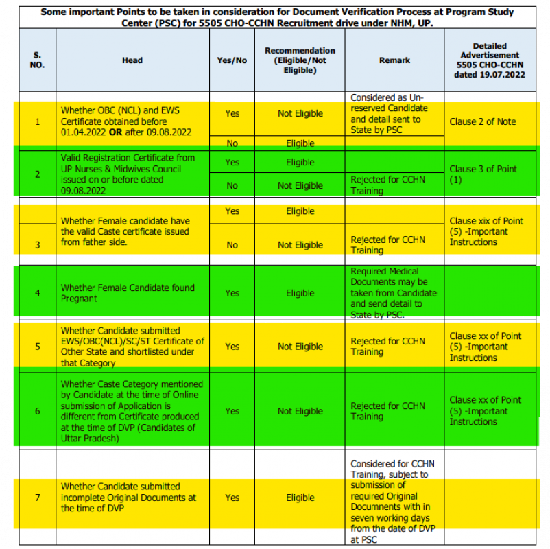 Here are some crucial considerations for the 5505 CHO-CCHN recruitment drive under NHM, UP's document verification process at the Program Study Center (PSC)