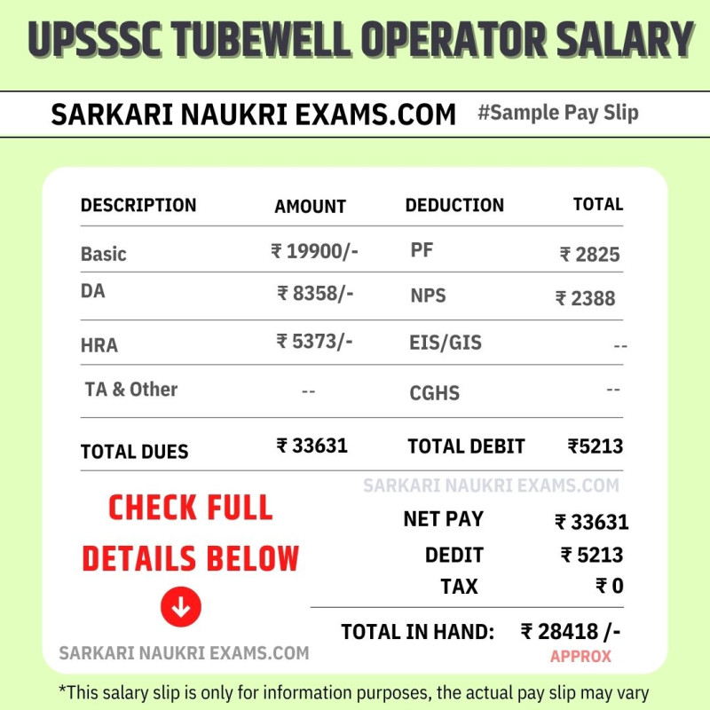 UP UPSSSC Tubewell Operator Salary In Hand Per Month