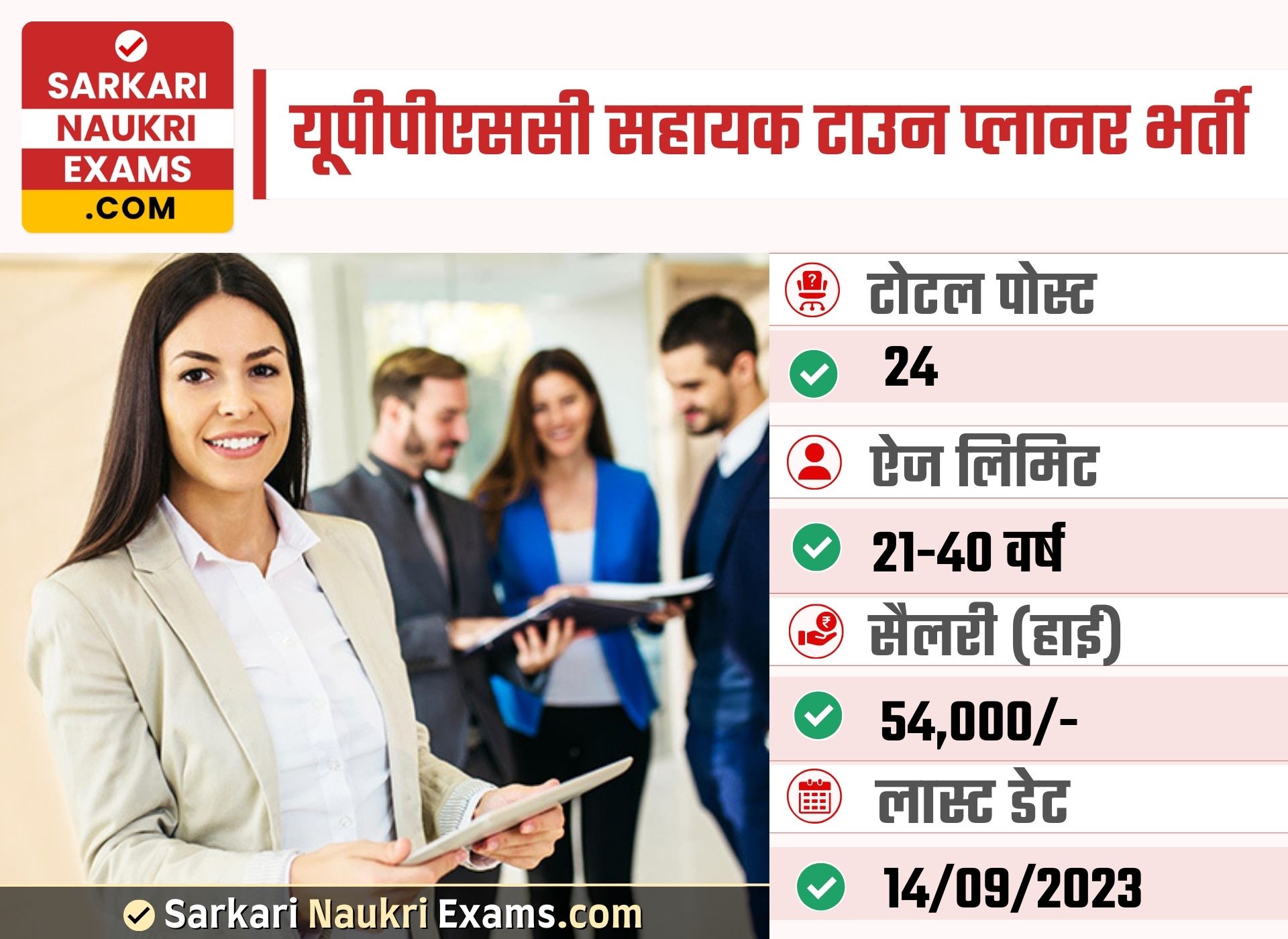 There are total 24 vacancies for this post notification. Min Pay Scale Monthly for this post is Rs.(15,600/-). Pay Scale for this vacancy is Rs.(15,600/--54,000/-). Max Pay Scale Monthly Rs.(54,000/-). Selection for this job will be based on Written Exam. The Last Date for Application Closing is 14/Sep/2023. Fee for General Candidate is Rs.125/-, OBC - Rs.125/- , SC - Rs.65/- & ST - Rs.65/-. If you want to apply online for this vacancy(bharti), visit website - Click Here. You can download notification from Here. If you want other details such as admit card, answer key & result for 2024 year, visit official website http://uppsc.up.nic.in/. For Latest Sarkari Result, Sarkari Exam & sarkariresult Updates keep visiting www.sarkarinaukriexams.com.