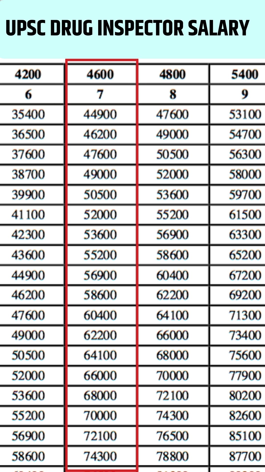 ┬аUPSC Drug Inspector Salary 2023: Information regarding grade pay, the seventh pay commission, and the salary of a UPSC Drug Inspector is provided. The UPSC Drug Inspector's monthly take-home salary includes all benefits and deductions. At present, the base salary for a UPSC Drug Inspector ranges from Rs. 44900 to Rs. 142400, with a base compensation of Grade Pay 4600 per month. Additionally, the UPSC Drug Inspector is entitled to various other benefits.